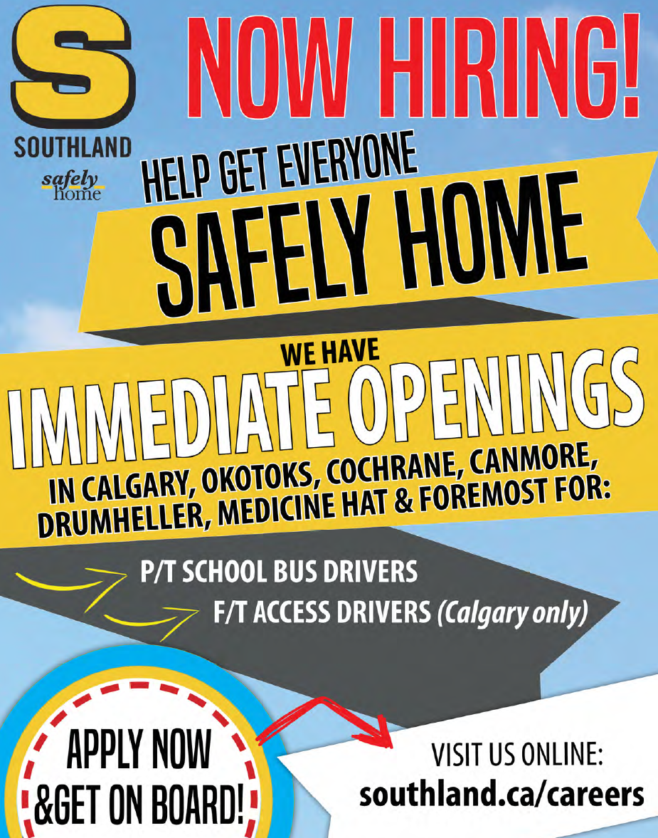 Southland has immediate openings for part-time school bus drivers and full-time access drivers.
